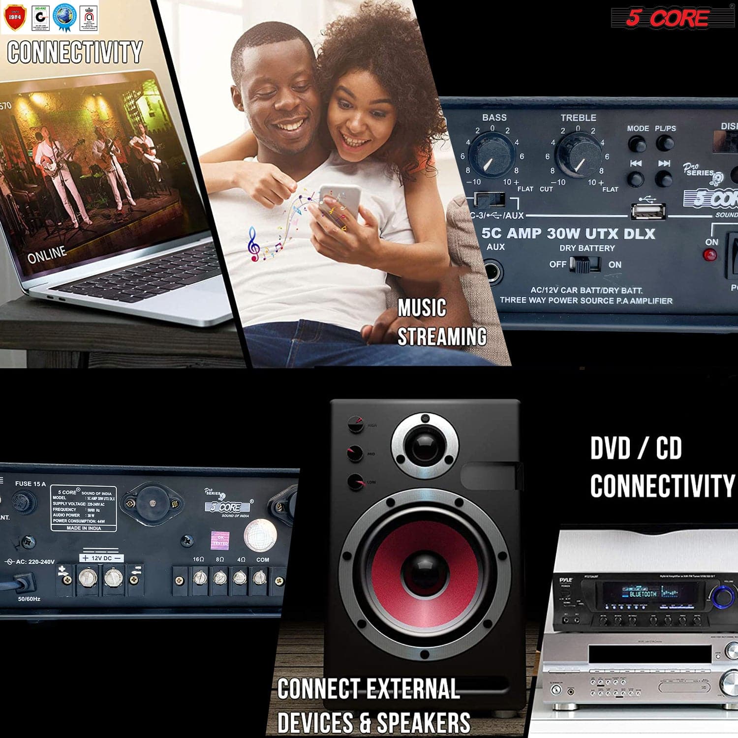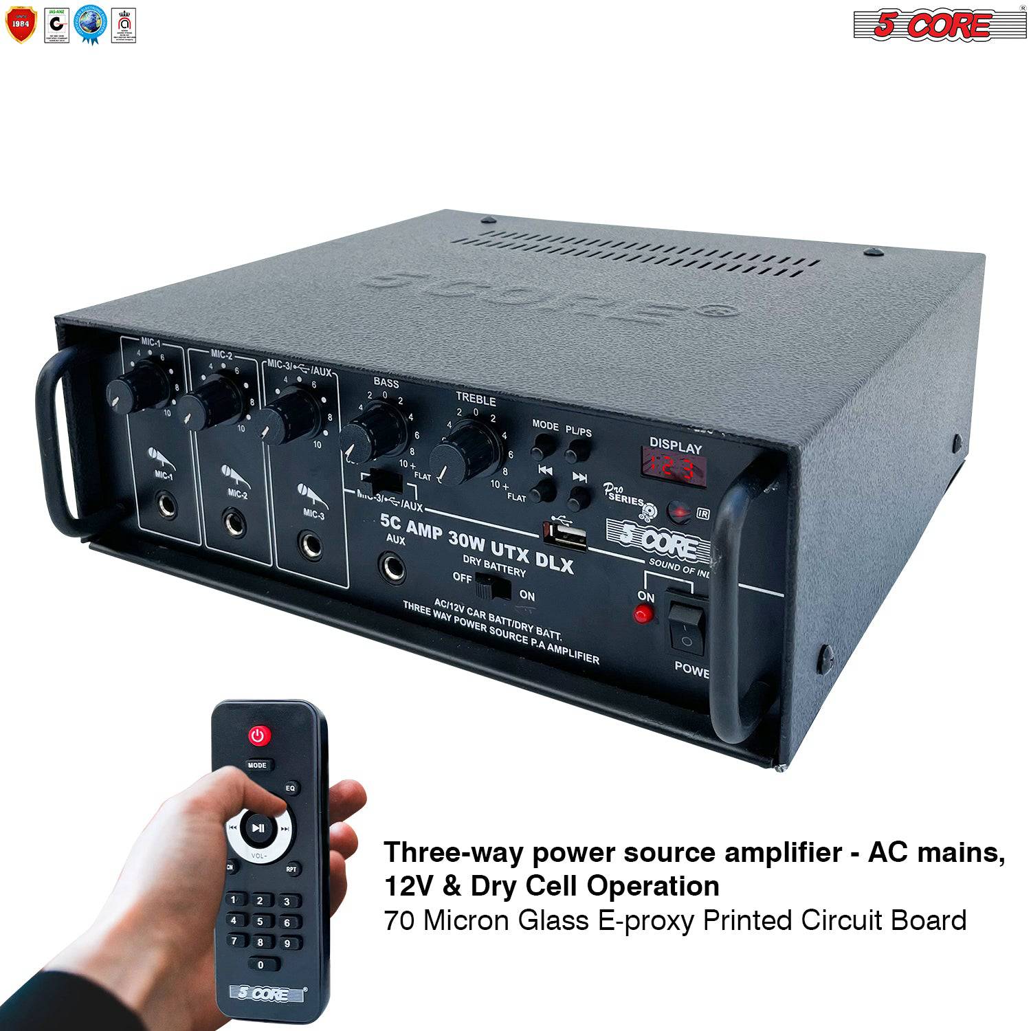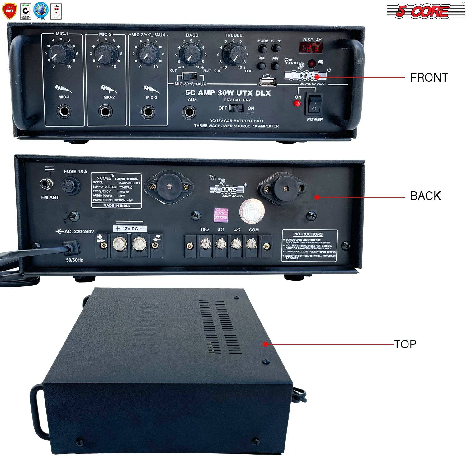 - 🗸 POWERFUL AUDIO – The 2 Channel Professional Paging Amplifier- 30W RMS 4Ω, perfect for Live Stage, DJ, studio, Auditorium, Outdoor announcement, and Worship. With 300 Watts of peak Power, it is usually sufficient for any outdoor audio requirement. Bass, Treble, Balance, and Master Volume Controller in the Amplifier.70 Micron Glass E-proxy Printed circuit board.