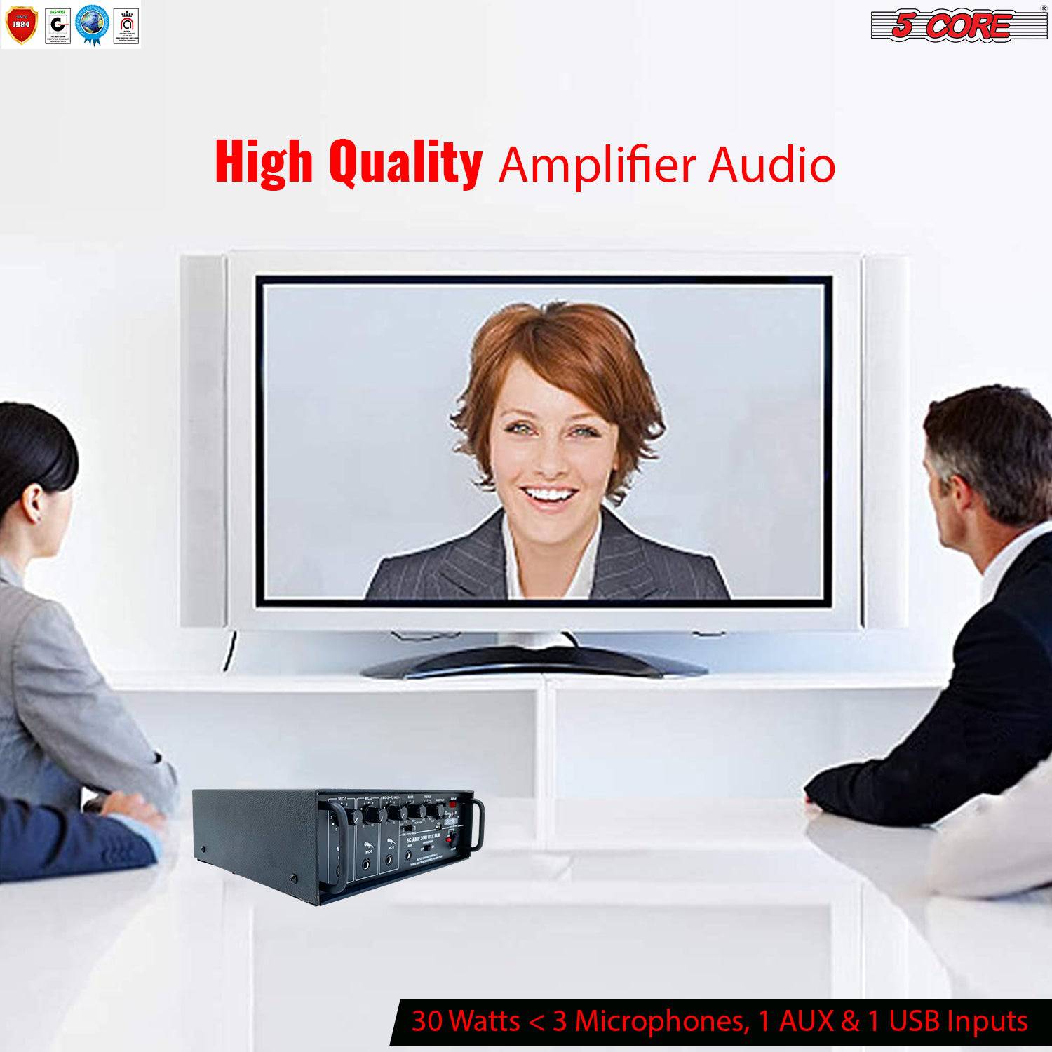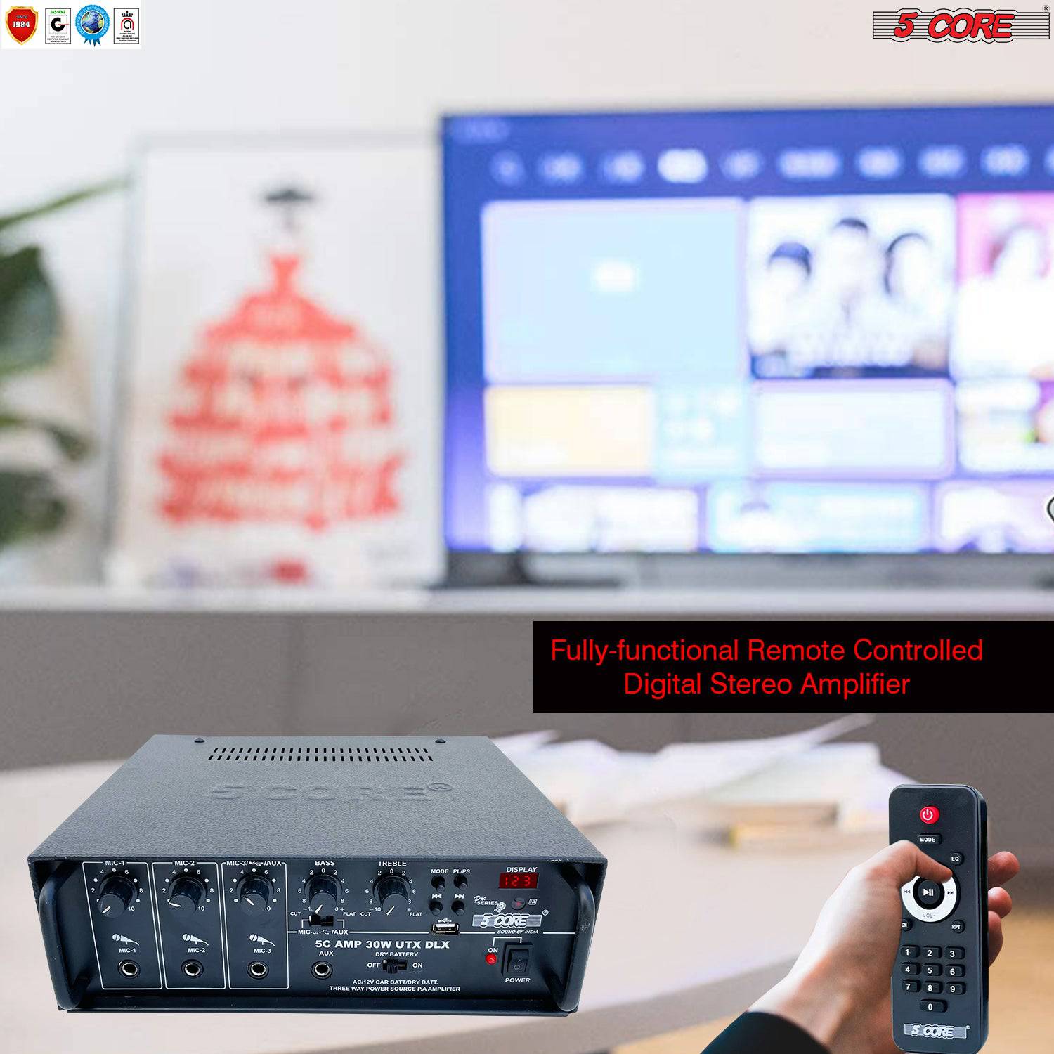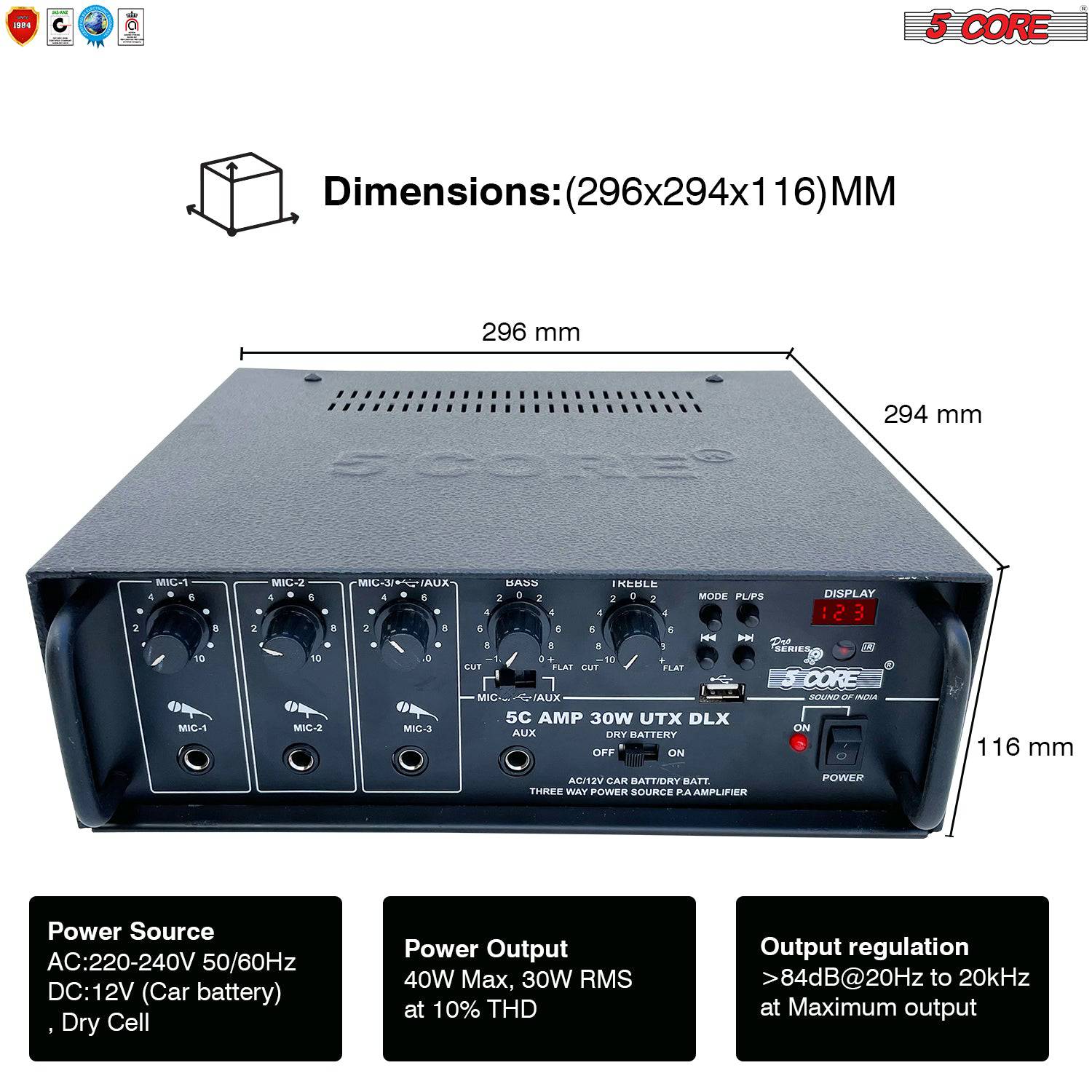 - 🗸 POWERFUL AUDIO – The 2 Channel Professional Paging Amplifier- 30W RMS 4Ω, perfect for Live Stage, DJ, studio, Auditorium, Outdoor announcement, and Worship. With 300 Watts of peak Power, it is usually sufficient for any outdoor audio requirement. Bass, Treble, Balance, and Master Volume Controller in the Amplifier.70 Micron Glass E-proxy Printed circuit board.